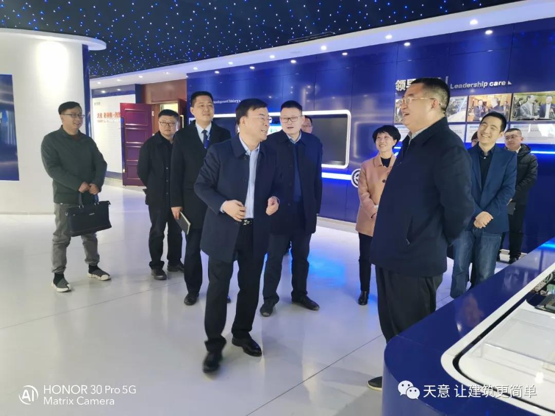 2021年2月23日, 市住建局黨組成員、副局長(zhǎng)趙羽,市住建局節(jié)能與科技科科長(zhǎng)孫新魯?shù)阮I(lǐng)導(dǎo)一行,在區(qū)住建局局長(zhǎng)鄒紅, 區(qū)住建局行業(yè)發(fā)展科科長(zhǎng)馬特等領(lǐng)導(dǎo)的陪同下,蒞臨天意座談并考察指導(dǎo)工作。天意機(jī)械董事長(zhǎng)劉洪彬,總經(jīng)理劉海龍,國(guó)內(nèi)銷(xiāo)售部經(jīng)理秦艷慧等領(lǐng)導(dǎo)參加了座談?wù){(diào)研,并陪同參觀了天意省級(jí)研發(fā)中心、科技體驗(yàn)館、BIM技術(shù)在裝配式建筑中的創(chuàng)新應(yīng)用情況等。