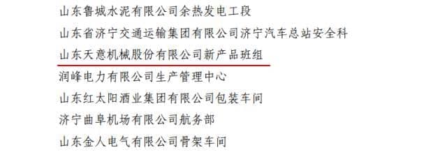 為激勵引導全省廣大青年職工強化安全生產(chǎn)意識,提高安全生產(chǎn)技能,參與安全生產(chǎn)管理,2016年共青團山東省委、山東省安全生產(chǎn)監(jiān)督管理局聯(lián)合開展了山東省青年安全生產(chǎn)示范崗創(chuàng)建活動。山東天意機械股份有限公司新產(chǎn)品班組榮獲2016年度“山東省青年安全生產(chǎn)示范崗”