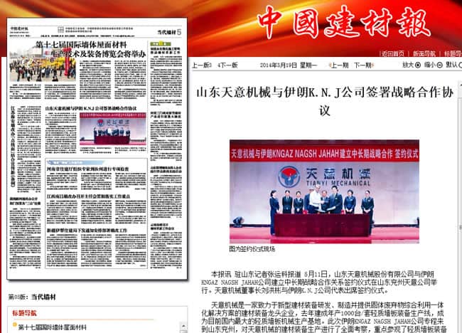 中國建材報(bào)報(bào)道天意機(jī)械走向世界!
