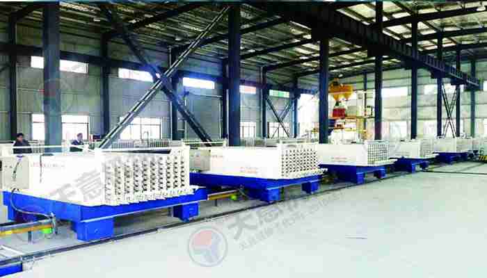 TY12型墻板生產(chǎn)線包括:墻板成型機(jī)、整體穿抽管系統(tǒng)、發(fā)泡系統(tǒng)、水箱、電子計(jì)量?jī)?chǔ)料倉、螺旋上料輸送機(jī)、儲(chǔ)料罐、螺旋輸送機(jī)、EPS熟化料倉、硫化干燥床、EPS預(yù)發(fā)機(jī)、數(shù)控配電室、發(fā)泡攪拌機(jī)、整體出板系統(tǒng)、叉車、成品堆放區(qū)、擺渡車。
