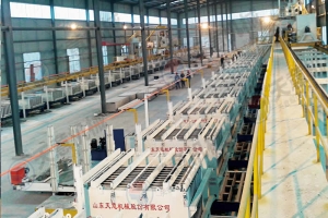 8、一機(jī)多用,墻板長(zhǎng)度可調(diào),整機(jī)組流水線工藝,年生產(chǎn)能力200萬m2。