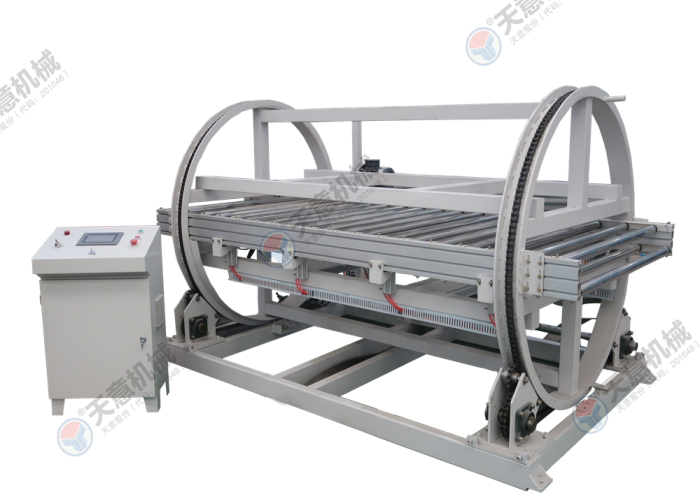 適用于平面門板、櫥柜側(cè)板、硅酸蓋板、玻鎂板、水泥纖維板等板式工件,配套連線作業(yè)時(shí)進(jìn)行180°自動(dòng)翻面1.翻轉(zhuǎn)電機(jī)1.5KW(帶抱閘),輸送電機(jī)0.75KW。2.翻轉(zhuǎn)傳動(dòng)鏈條采用16A鏈條,承載能力高,動(dòng)載荷大。3.采用獨(dú)立電箱控制,操作控制簡單方便4.設(shè)備兩側(cè)具有鋼絲網(wǎng)保護(hù),提高設(shè)備安全性能